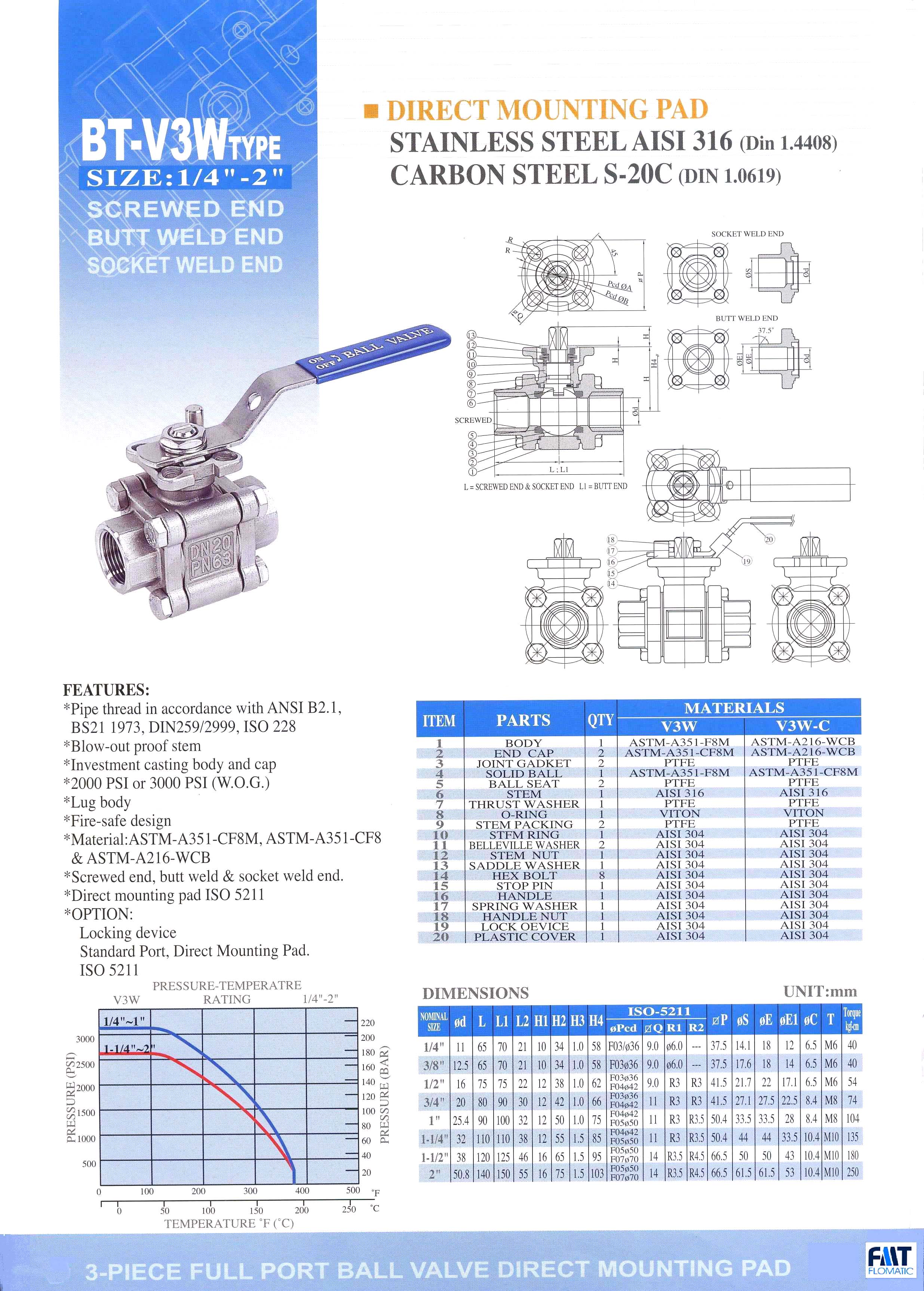 BT-V3MH SIZE: 1/4”-4” SCREWED END BUTT WELD END SOCKET WELD END